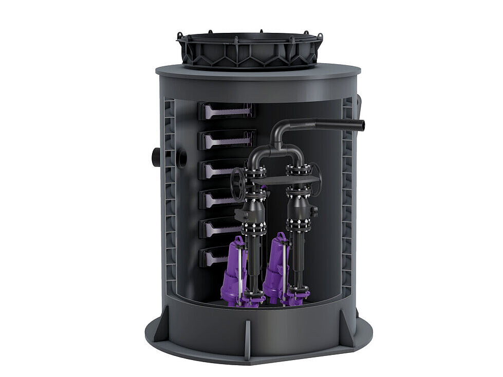 Przepomopowni hybrydowe są instalowane w budynku. Oznacza to, że potrzebują tam miejsca. Jeśli nie ma miejsca na ustawienie urządzenia, należy zastosować przepompownię zewnętrzną: można ją zainstalować w studzience przyłączeniowej w ziemi na zewnątrz budynku. Nawet jeśli woda deszczowa na zewnątrz budynku ma być odprowadzana oddzielnie, pomocna może okazać się przepompownia zewnętrzna. Dotyczy to na przykład odwadniania większych terenów otwartych. Różnorodność modeli jest ogromna: dostępne są przepompownie zewnętrzne do ścieków bez fekaliów lub zawierających fekalia, jako instalacje pojedyncze lub urządzenie dwupompowe o różnym zakresie wydajności – od małych pomp do prywatnych domów po wydajne pompy do zastosowań komercyjnych.