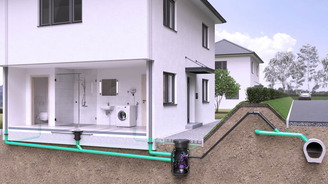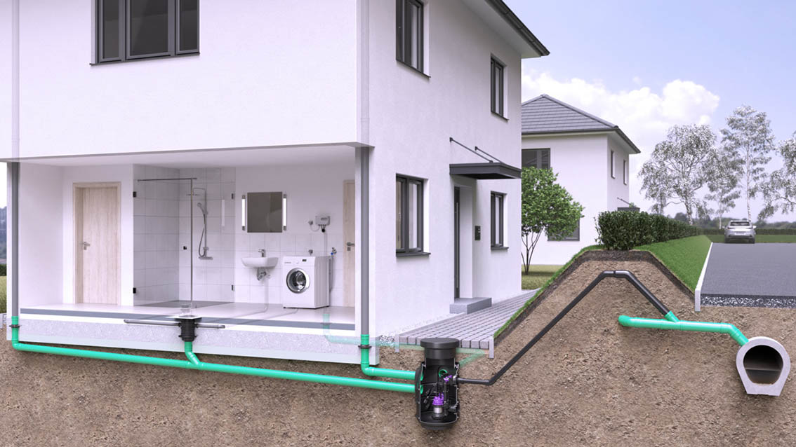 Wariant do ścieków bez fekaliów posiada jedną lub dwie zawieszone pompy typu GTF 600 lub GTF 1250. Izolacja akustyczna zbiornika redukuje poziom hałasu podczas pracy. Wysoki poziom bezpieczeństwa gwarantuje niezatykający się wirnik Vortex z wolnym przelotem o średnicy 30 mm.