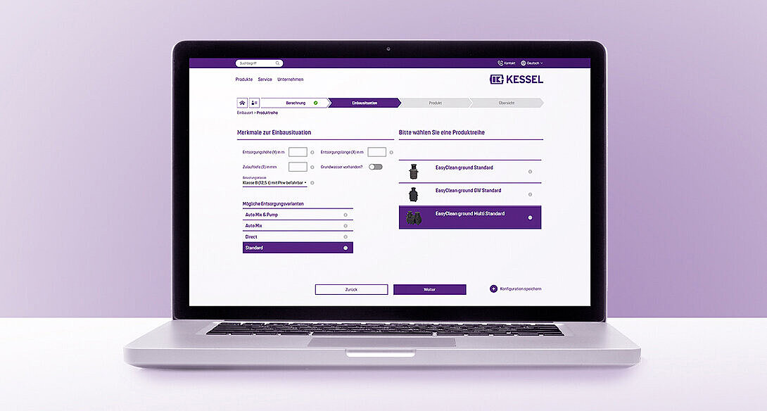 - Interaktywny wybór produktu zależnie od miejsca instalacji, technik opróżniania i akcesoriów.