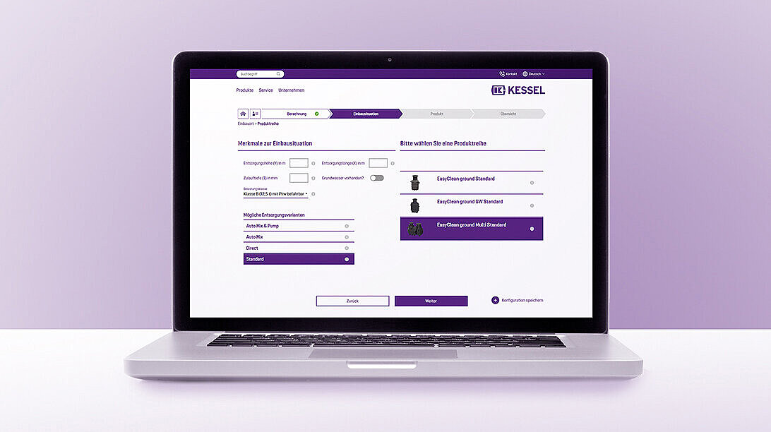 - Interaktywny wybór produktu zależnie od miejsca instalacji, technik opróżniania i akcesoriów.